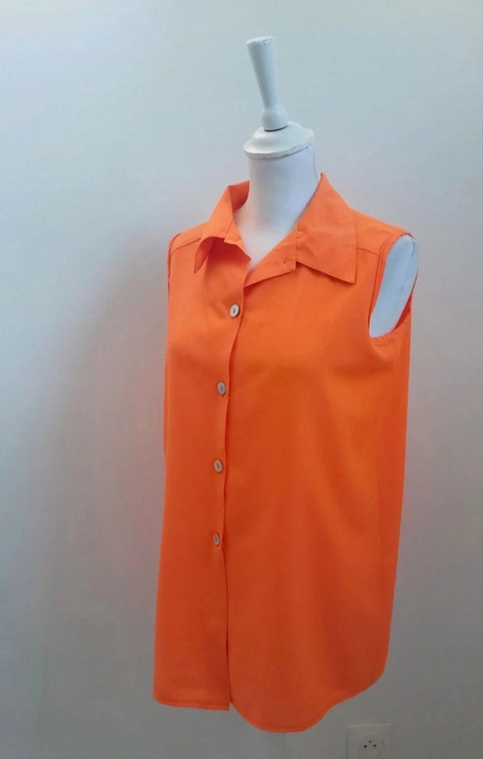 Chemise fluide et légère sans manche orange boutons nacrés L - photo numéro 1