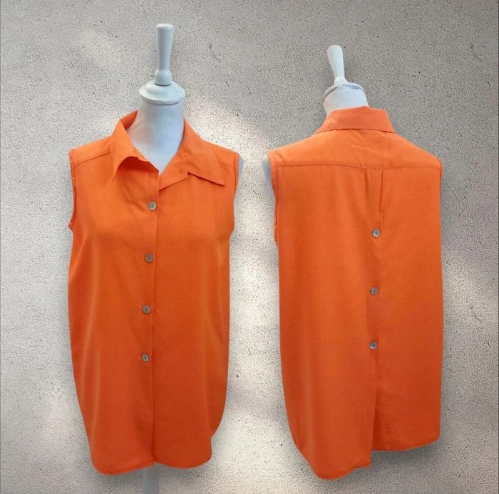 Chemise fluide et légère sans manche orange boutons nacrés L - photo numéro 2