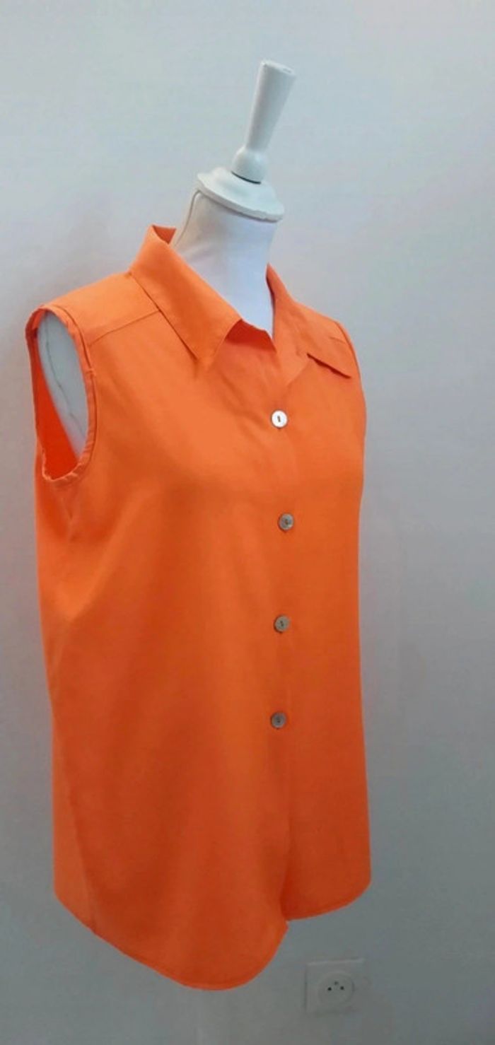 Chemise fluide et légère sans manche orange boutons nacrés L - photo numéro 6