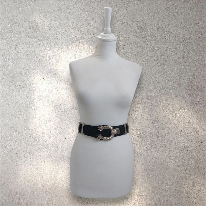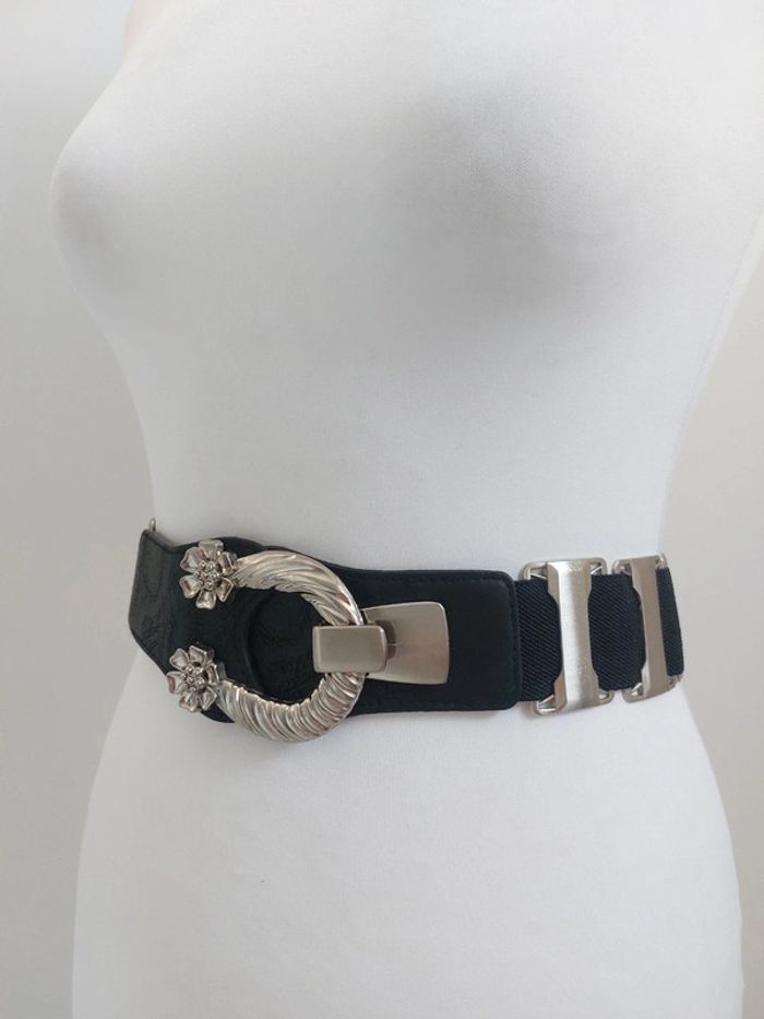 Ceinture large élastique noire avec grosse boucle - photo numéro 1