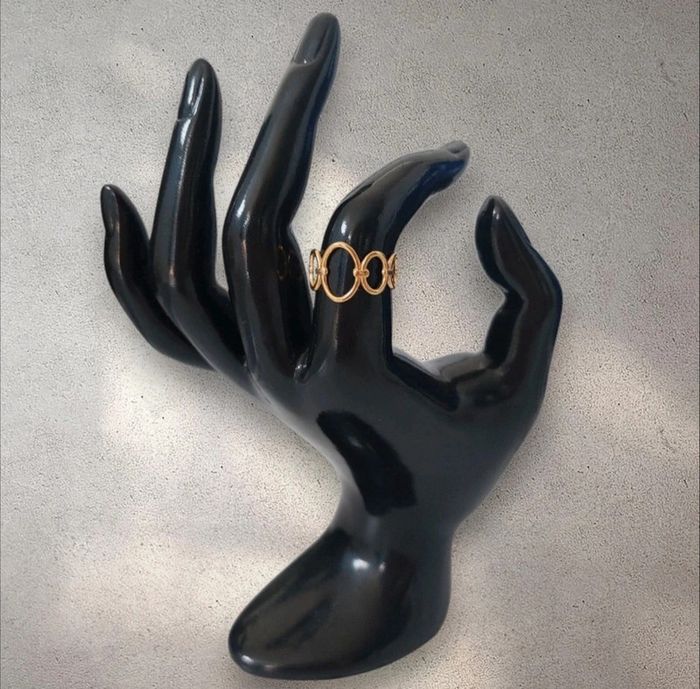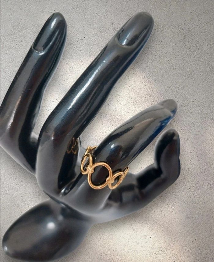 Bague en acier inoxydable dorée ajustable anneaux entrelacés neuve - photo numéro 3