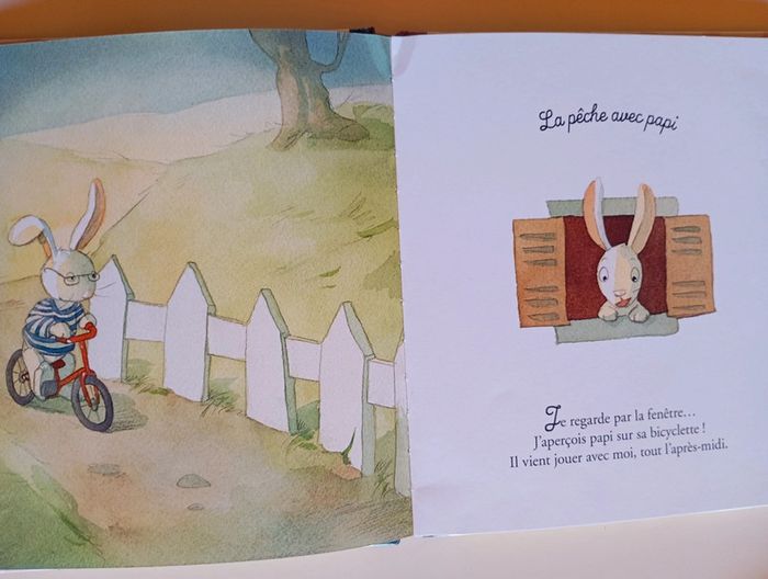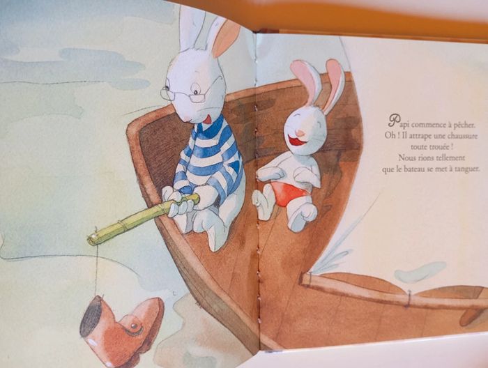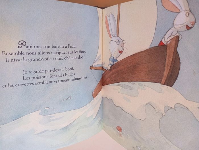 Aujourd'hui, petit lapin et son papi vont à la plage, et s'il fait beau, ils feront peut-être du bateau ! Une histoire merveilleuse avec des illustrations extraordinaires qui émerveilleront les petits de 2 ans ! Histoires et sucres d'orge, une belle collection d'histoires adaptées à chaque âge de l'enfant, de l'éveil à la lecture jusqu'à ses 7 ans. Éditeur ‏ : ‎ FLEURUS 32 pages Âge de lecture ‏ : ‎ 2 - 5 ans Dimensions ‏ : ‎ 22.5 x 0.9 x 25.6 cm Livre en excellent état #lapin #grandpère #mer #pêche #bateau #plage #vacances