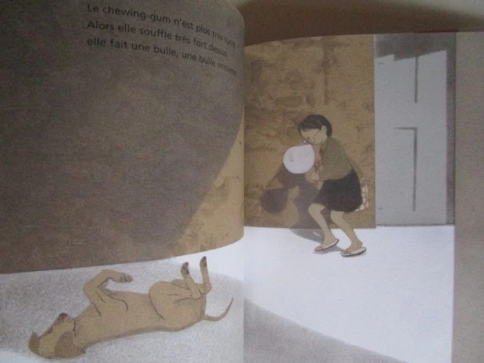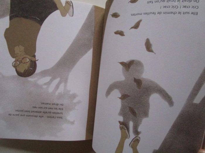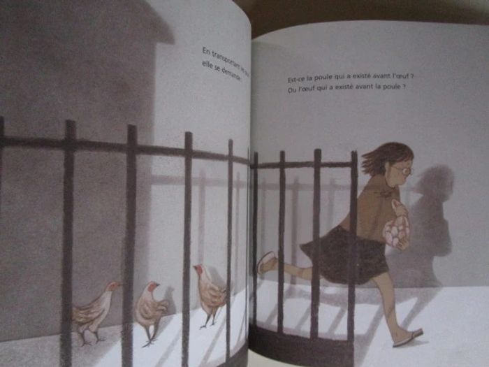 Par un bel après-midi, Shau-yu sort jouer. Sa maman lui demande de ramener une douzaine d'œufs pour le repas du soir. Dans la rue, la fillette s'amuse : elle suit l'ombre du chat le long de l'ombre du toit sur le trottoir, elle se cache derrière un mur et imite les aboiements du chien, elle ramasse une belle bille bleue à travers laquelle elle voit le monde en bleu, elle aime le bruit que font les feuilles mortes lorsqu'on marche dessus, elle trouve une paire de lunettes sous un arbre qui lui font voir le monde flou, puis arrive chez l'épicier où elle achète les œufs et rentre chez elle accompagné du chien, en faisant bien attention de ne pas casser la marchandise. Editeur : Editions Philippe Picquier 36 pages Âge de lecture ‏ : ‎ 3 - 6 ans Dimensions ‏ : ‎ 19.7 x 0.9 x 23.7 cm Livre en excellent état (Dédicace à l'intérieur de la couverture) #parcoursinitiatique #ombre #promenade #chine #oeuf