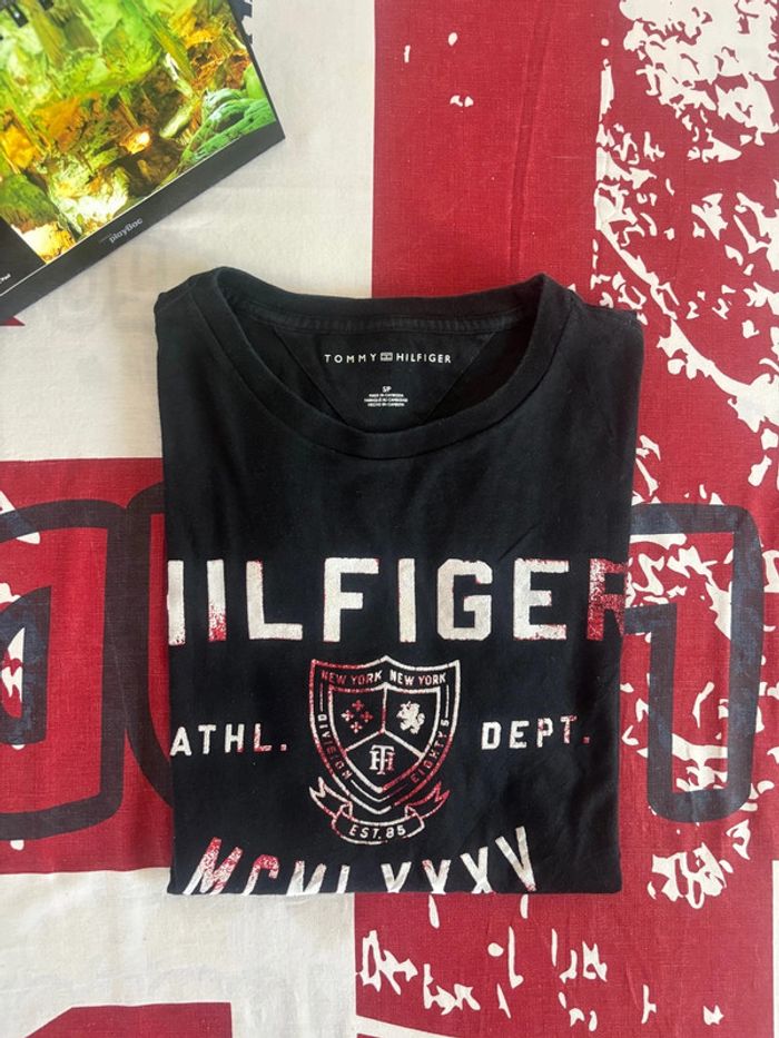 T-shirt manche courte Tommy Hilfiger taille S bleu imprimé blanc et rouge