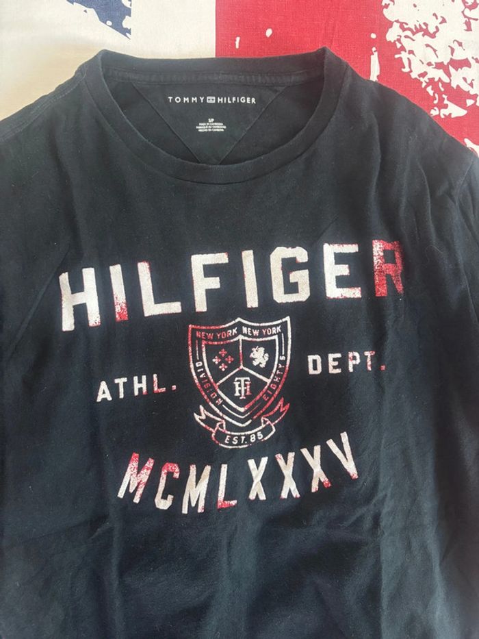 T-shirt manche courte Tommy Hilfiger taille S bleu imprimé blanc et rouge - photo numéro 1
