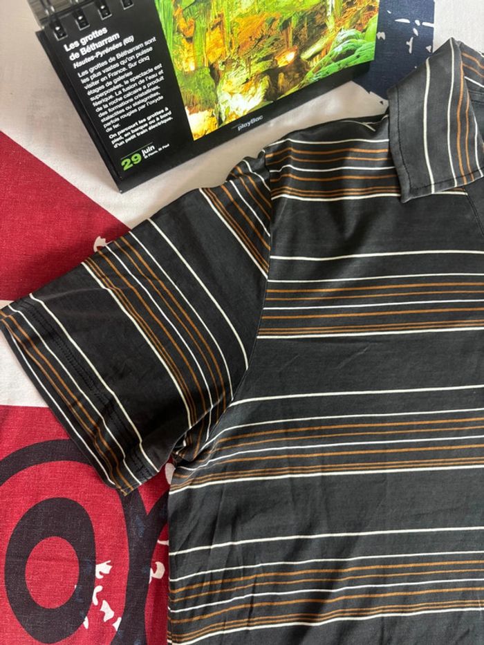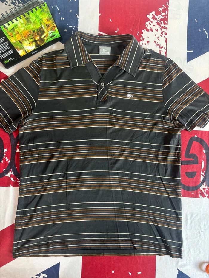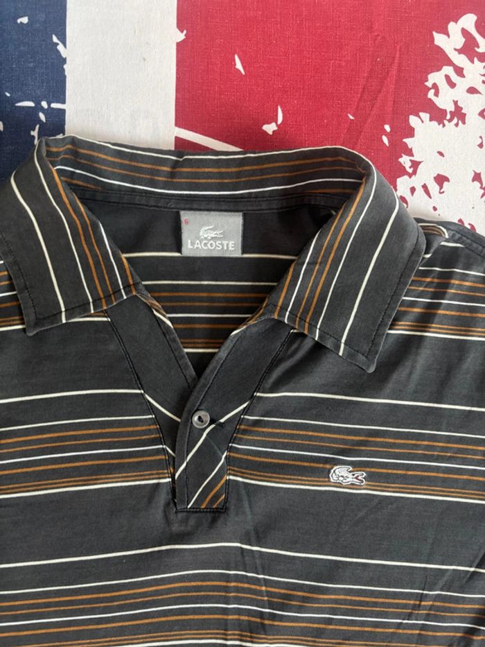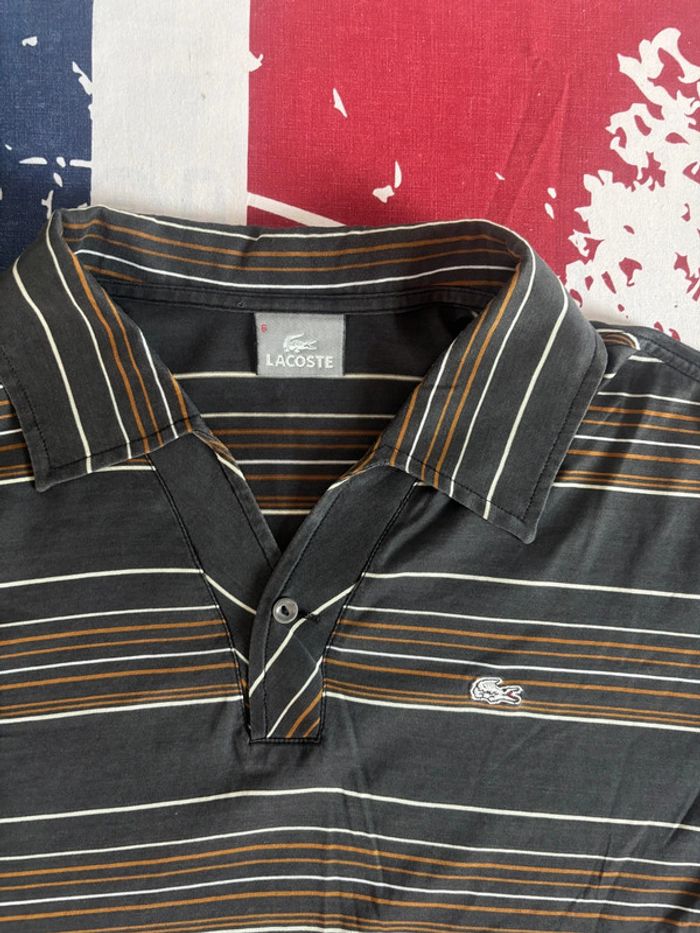 Polo Lacoste vintage taille L/XL noir à rayure marron et blanche