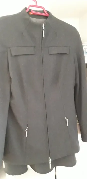 Composé d’une veste cintrée à col tailleur et d’une jupe droite assortie, c’est l’ensemble parfait pour un look de bureau chic ou un entretien stylé.