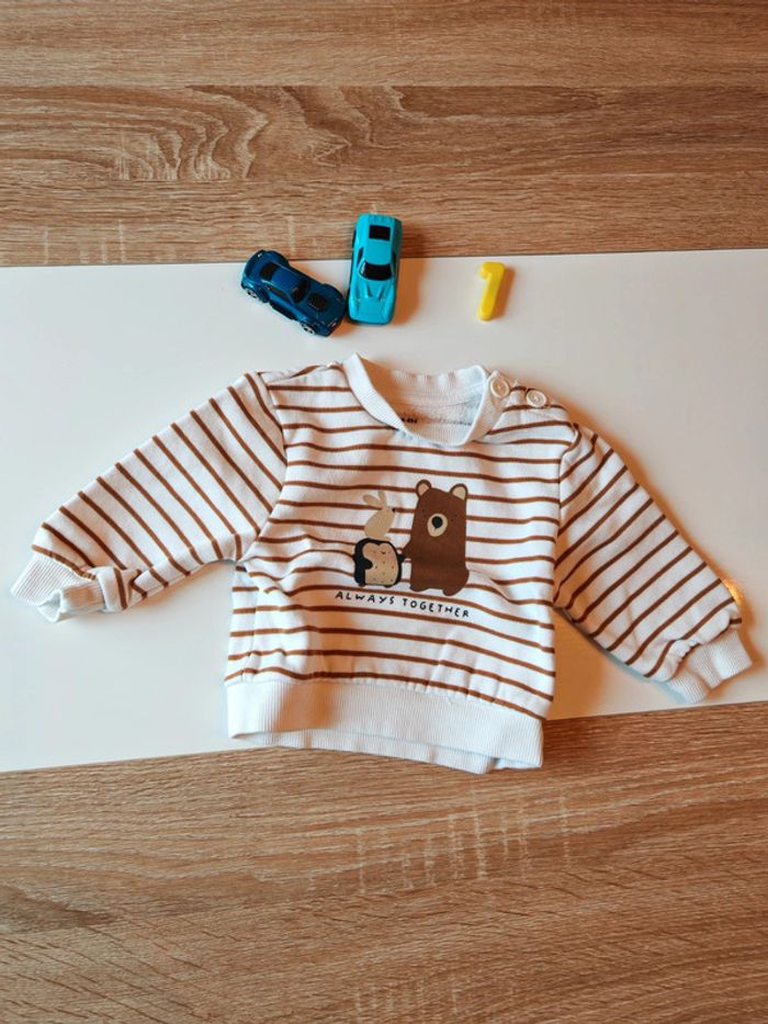 👕 | sweat 📏 | 1 mois 🏬 | Kiabi 🏷 | Très bon état 📦 | Livraison via Mondial Relais, Relais Colis, ou Chrono2shop ➡️ Envoi rapide #tataderaphoubebegarcon1mois 🌸 Toutes mes offres sont triées en fonction des tailles, je propose des prix de lots et fais des remises en plus sur les lots Objectif seconde vie