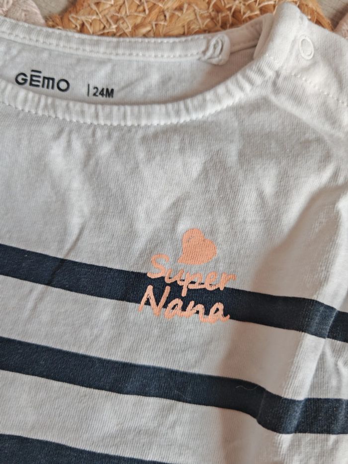 👗 | Tee shirt manche longue 📏 | Taille 2 ans 🏬 | Gémo 🏷 | TBE 📦 | Livraison via Mondial Relais, Relais Colis, ou Chrono2shop ➡️ Envoi rapide #MumOfMargotbebefille24mois 🌸 Toutes mes offres sont triées en fonction des tailles, je propose des prix de lots et fais des remises en plus sur les lots Objectif seconde vie