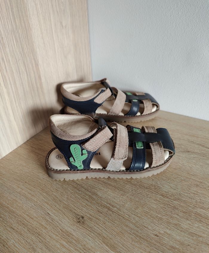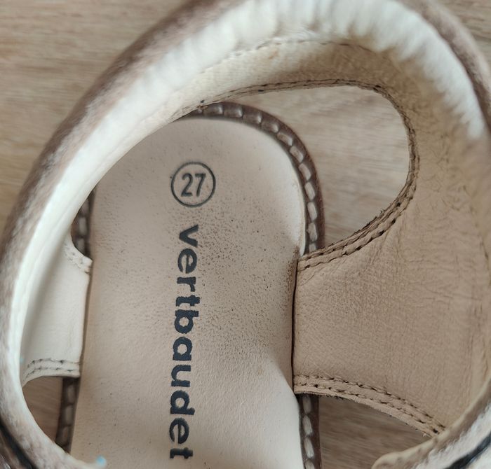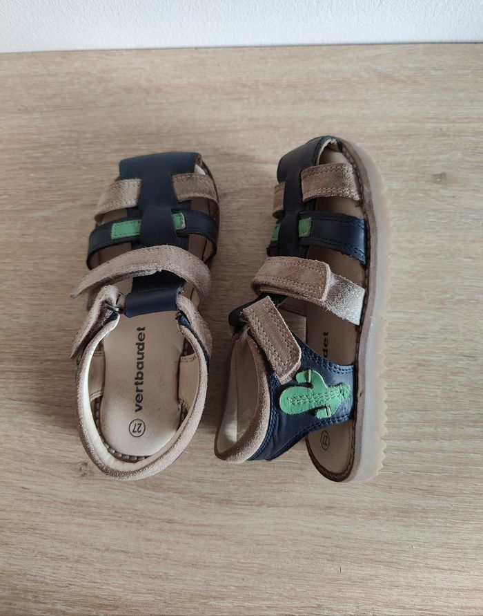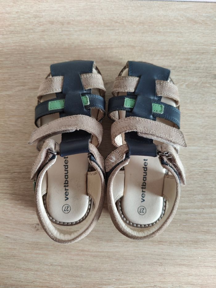 Paire de sandales en cuir Modèle garçon Pointure 27 Marque Vertbaudet Velcro pour l'enfilage facilité Très peu portées