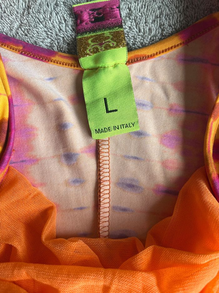 🌺 Débardeur Save The Queen Taille L – Rose & Orange avec Fleur Décorative - photo numéro 7