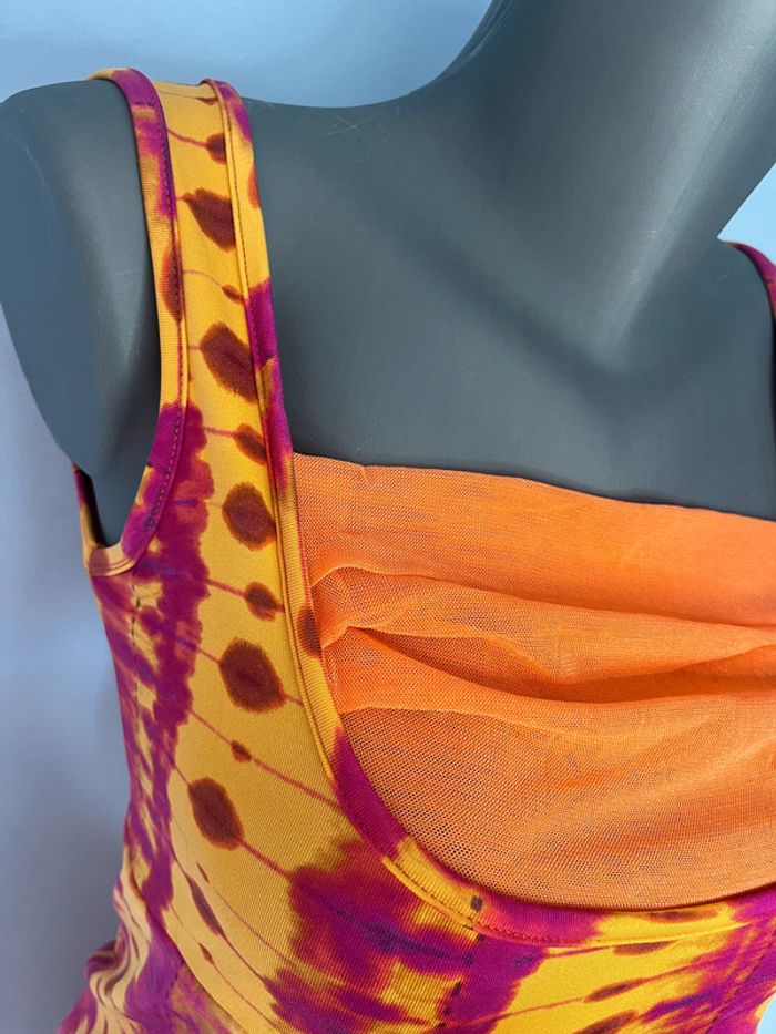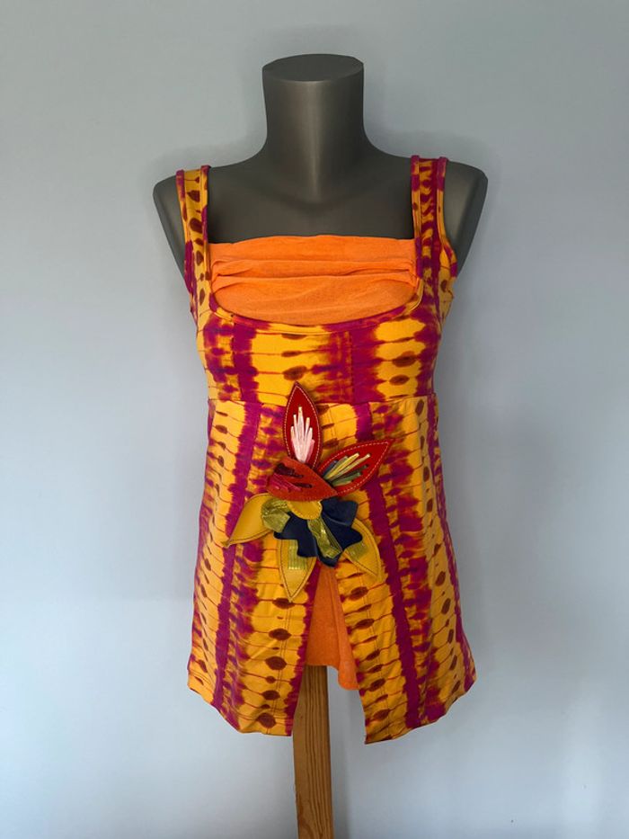 🌺 Débardeur Save The Queen Taille L – Rose & Orange avec Fleur Décorative - photo numéro 4
