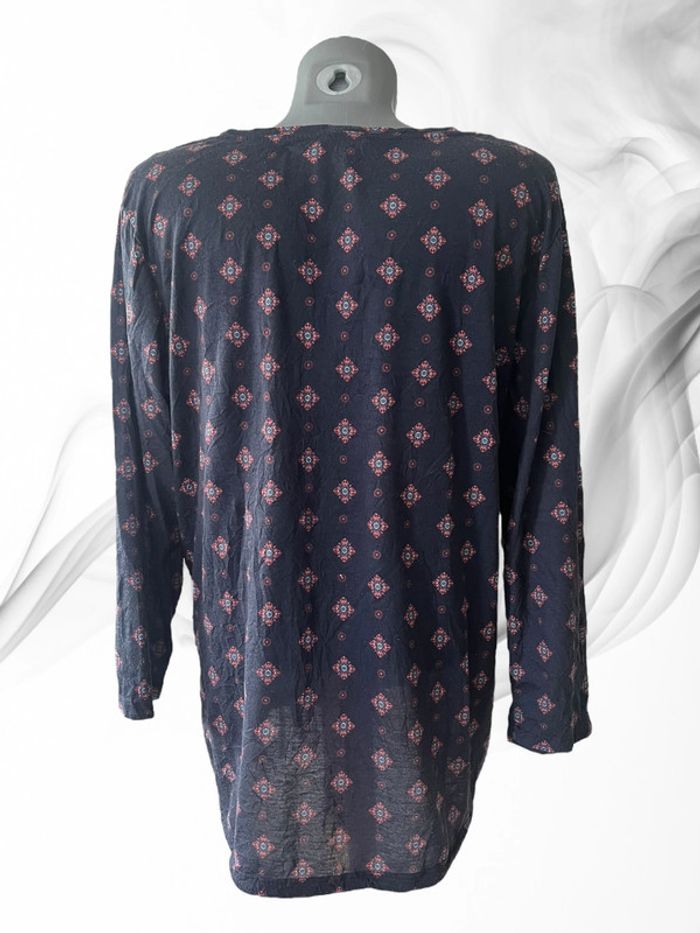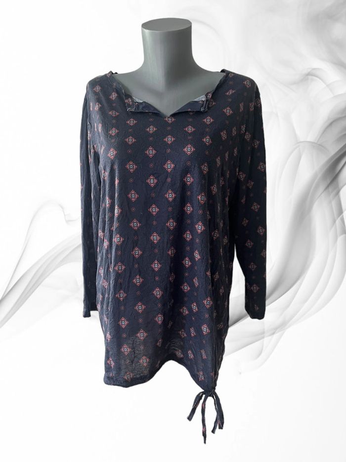 Haut à manches longues bleu foncé avec imprimé Petit nœud au bas du vêtement Marque : Street One Taille : 42 #HautFemmeXLrbspauline