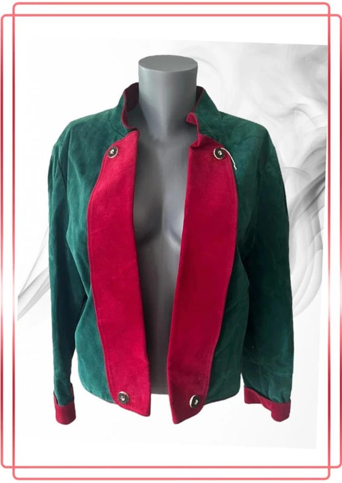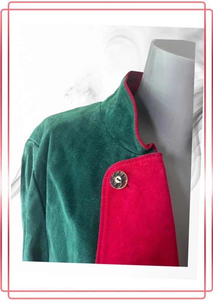Veste pour évènement de couleur verte et rouge Pas d’étiquette de taille, dimensions prises à plat sur la dernière photo