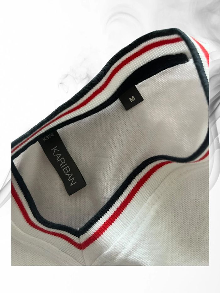 T-shirt à manches courtes blanc avec bords bleu blanc rouge Petite tache sur le côté Taille : M #HautHommeMrbspauline
