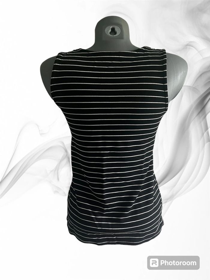 Débardeur rayé noir et blanc avec effet bijoux au niveau du col Marque : Pimkie Taille : S #HautFemmeSrbspauline