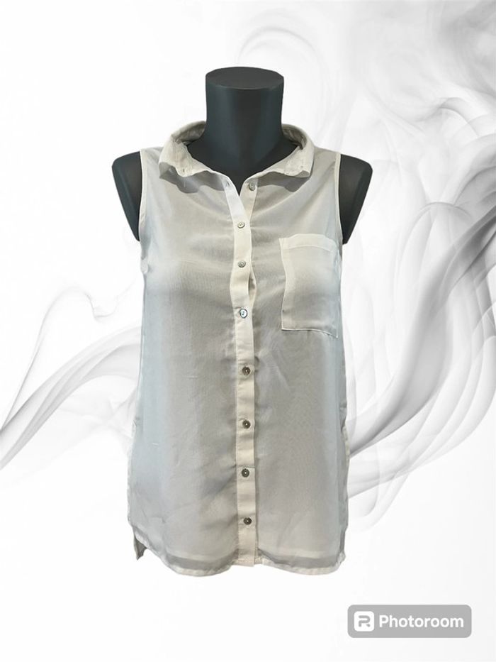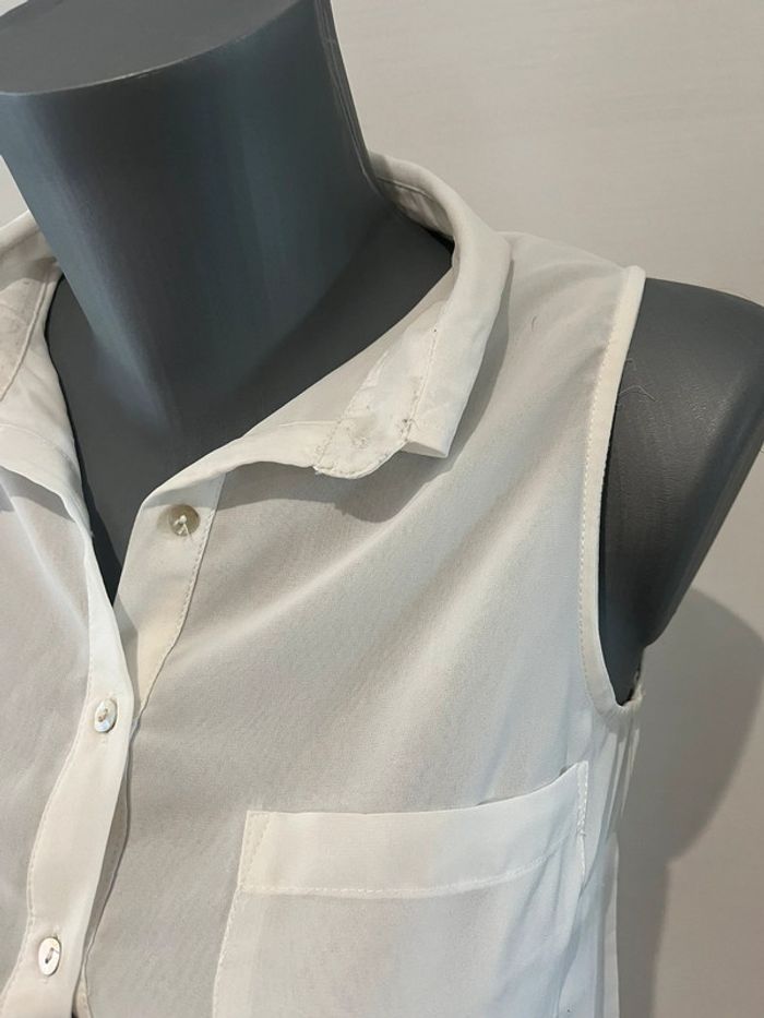 Chemise sans manches blanche, tissu fin donc avec transparence Marque : Pimkie Taille : S #HautFemmeSrbspauline