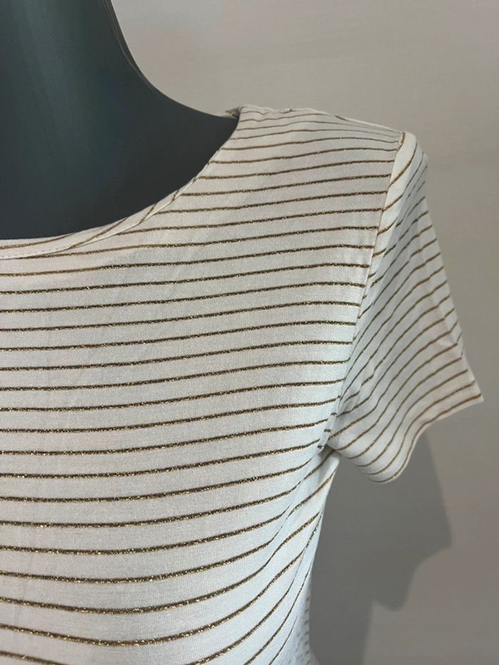 T-shirt à manches courtes rayé blanc cassé et doré Marque : Pimkie Taille : S #HautFemmeSrbspauline