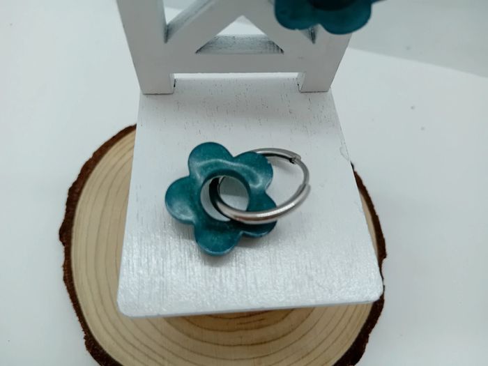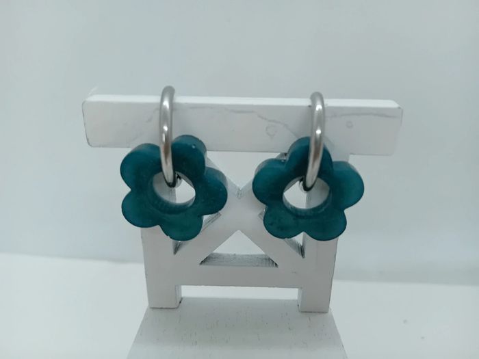 Boucles d'oreilles anneaux fleurs résine - photo numéro 4