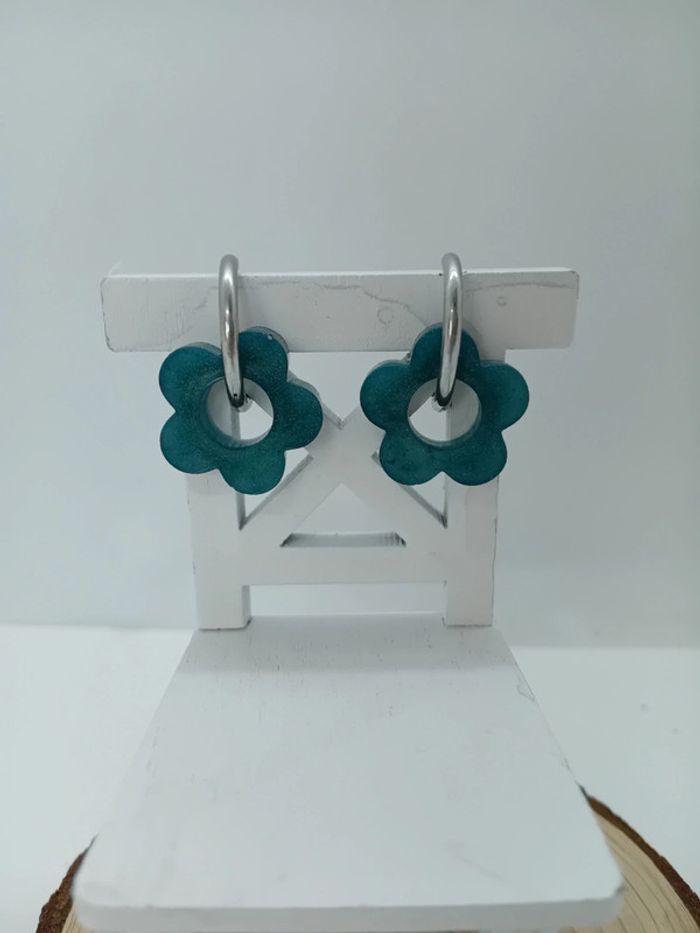 Boucles d'oreilles anneaux fleurs résine - photo numéro 1