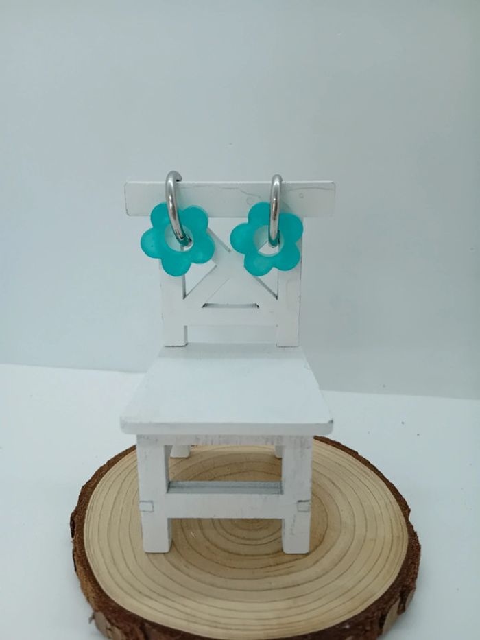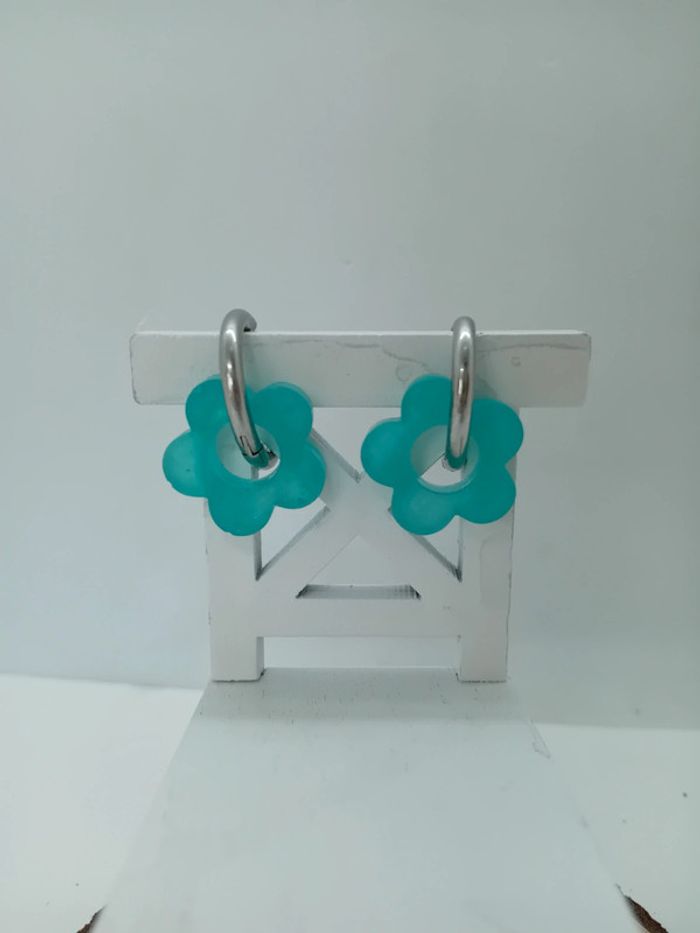Boucles d'oreilles anneaux petites fleurs résine - photo numéro 1