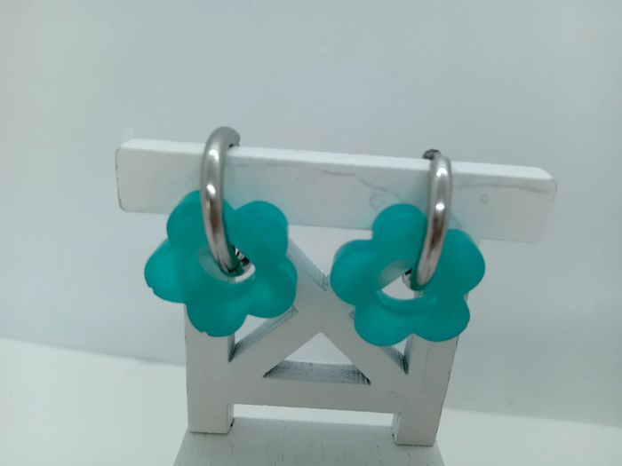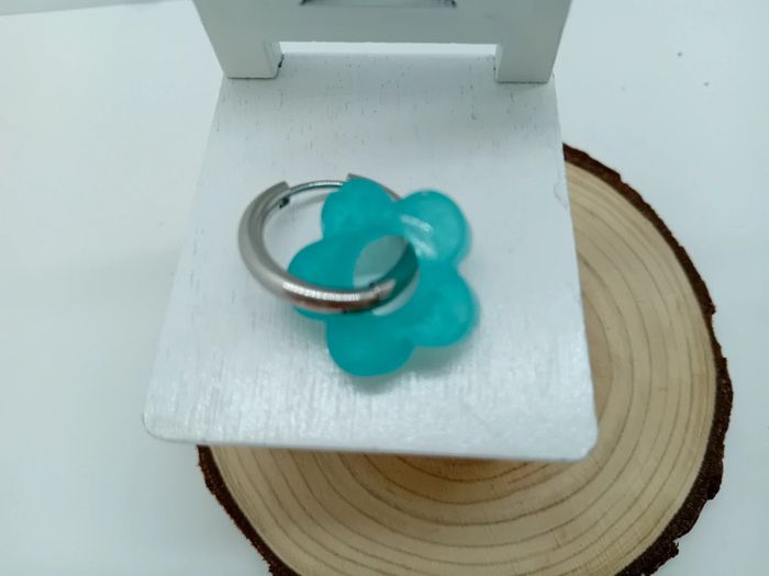 Boucles d'oreilles anneaux petites fleurs résine - photo numéro 4
