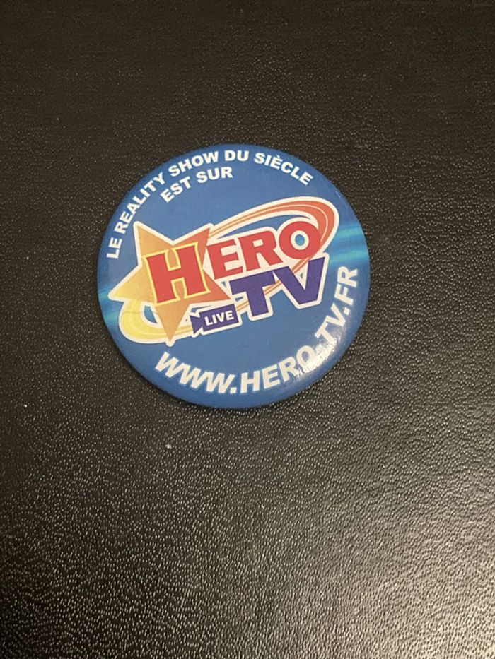 Badge de l'univers de la série animée Tiger and Bunny à l'effigie de Hero TV Live. En excellent état. Taille : environ 3,5 cm de diamètre.
