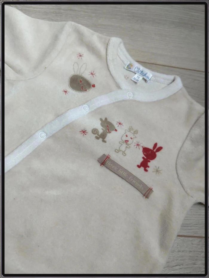 Pyjama qui fait garçon et fille. Noté 1 mois sur l'étiquette mais taille naissance. Je n'ai jamais pu le mettre à ma fille. En très bon état. #garçon0moisgameirot #fille0moisgameirot
