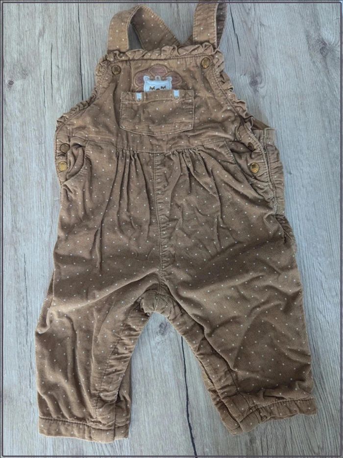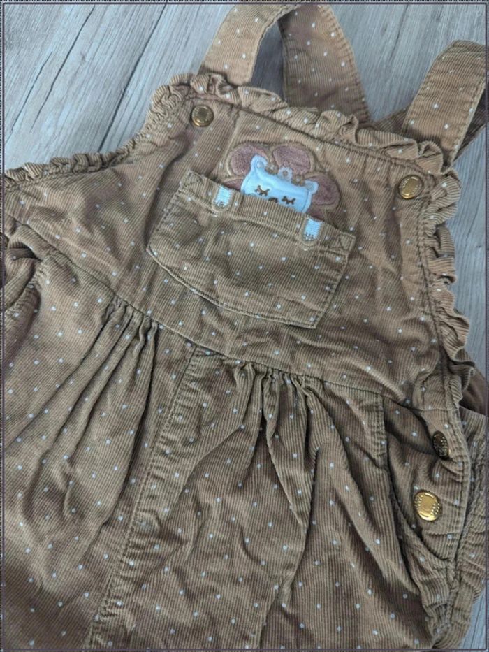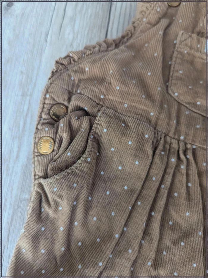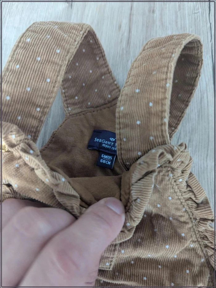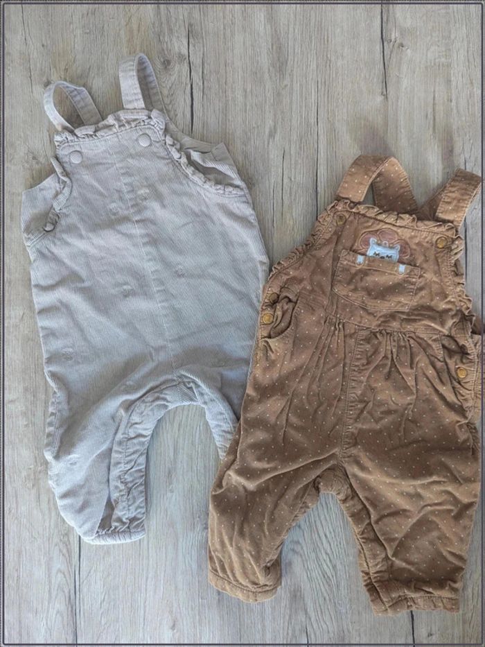 2 salopettes, plutôt chaudes, avec boutons pressions au niveau de la taille, de la couche et des bretelles. Matière en velours côtelé pour les 2. Elles sont en très bon état. Marques : sergent major et Kiabi. #fille6moisgameirot