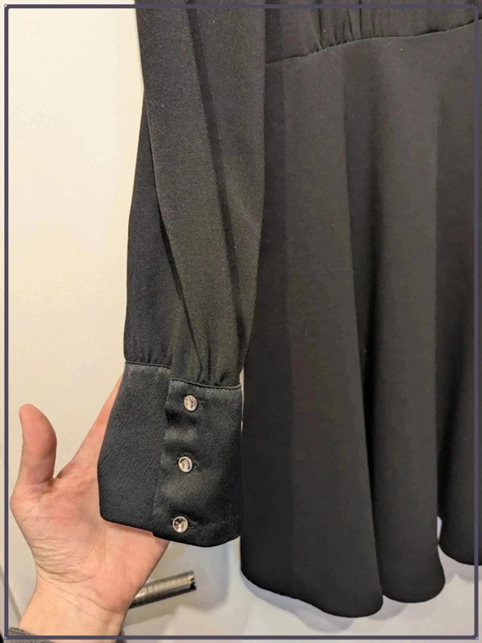 Robe manches longues, très classe. Tissu de très bonne qualité, plutôt chaude. Arrive au niveau des genoux.