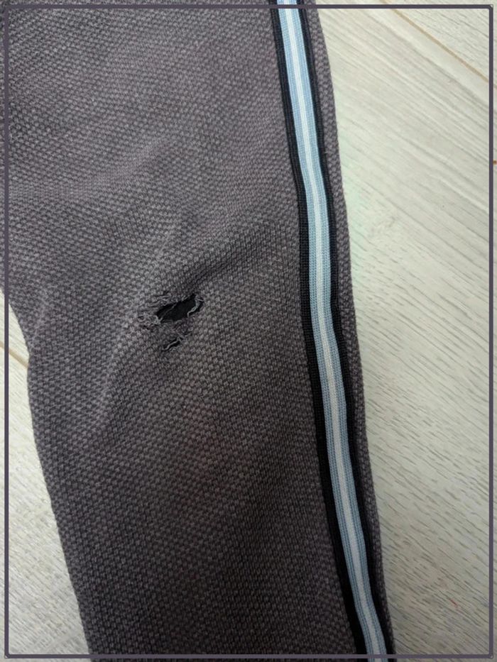 Pantalon chaud, doublé. Trous au niveau des genoux (voir photos). La première couche est trouée, pas la doublure. Le trou ne traverse pas le pantalon. Pantalon style jogging mais pour l'hiver. #garçon4ansgameirot