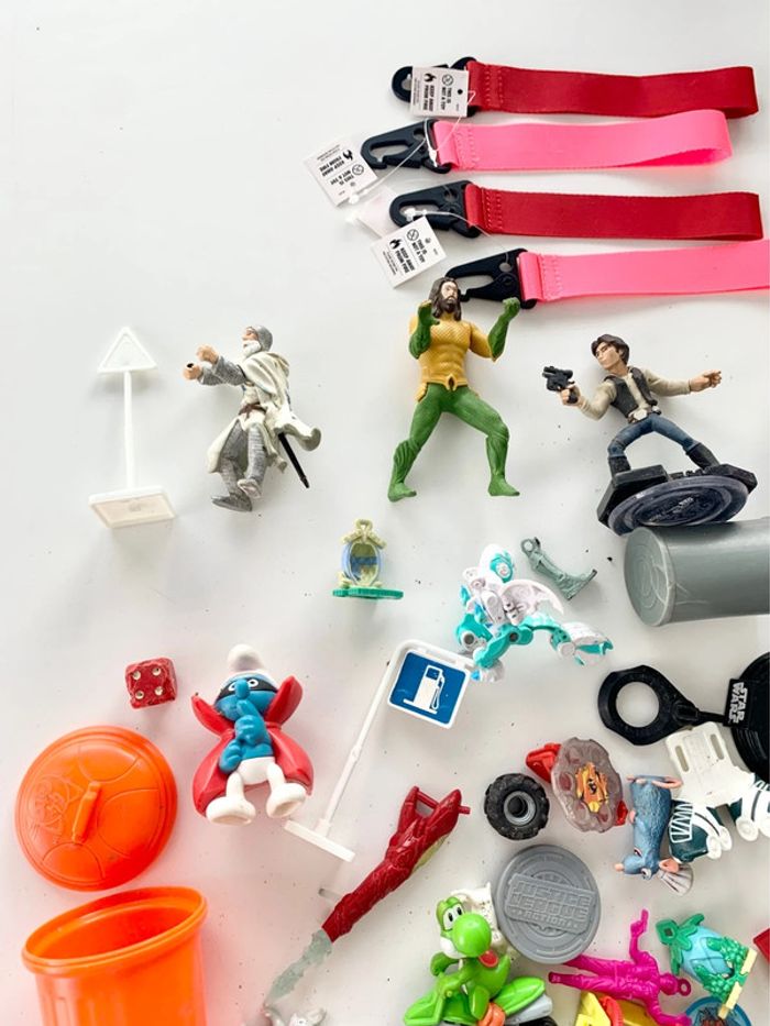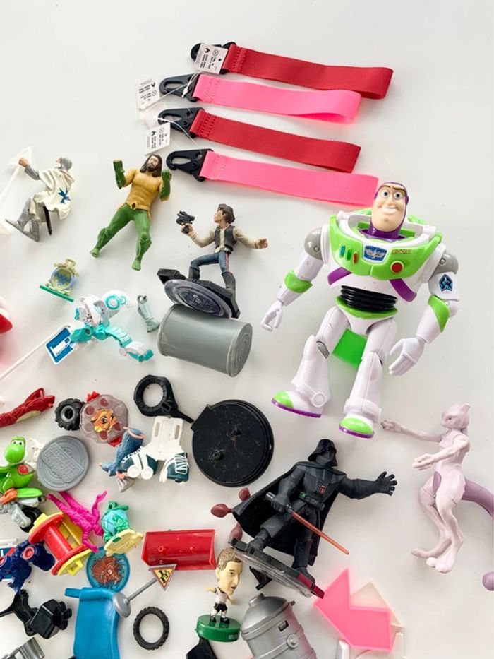 Vous trouverez tout type de personnages dans ce lot indissociable Dark vador de star wars, yoshi de mario bros, buzz l'éclair de toy story, shtroumpfs, mewtwo de pokémon, joueur de foot reus, bakugan cassé, panneaux de signalisation, morceaux de rubikscube, un roi de burger king, ratatouille, chevalier, dès, support de beyblade, disney, ...