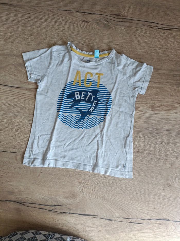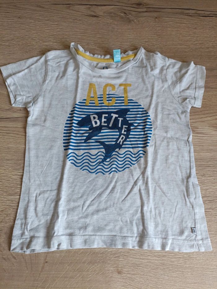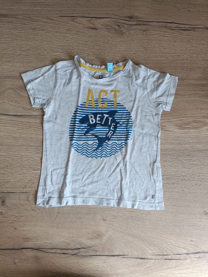 T-shirt gris manches courtes. Motif requin Taille 5 ans Marque Okaïdi #adou49taillegarçon5ans #adou49okaidi #adou49obaibi