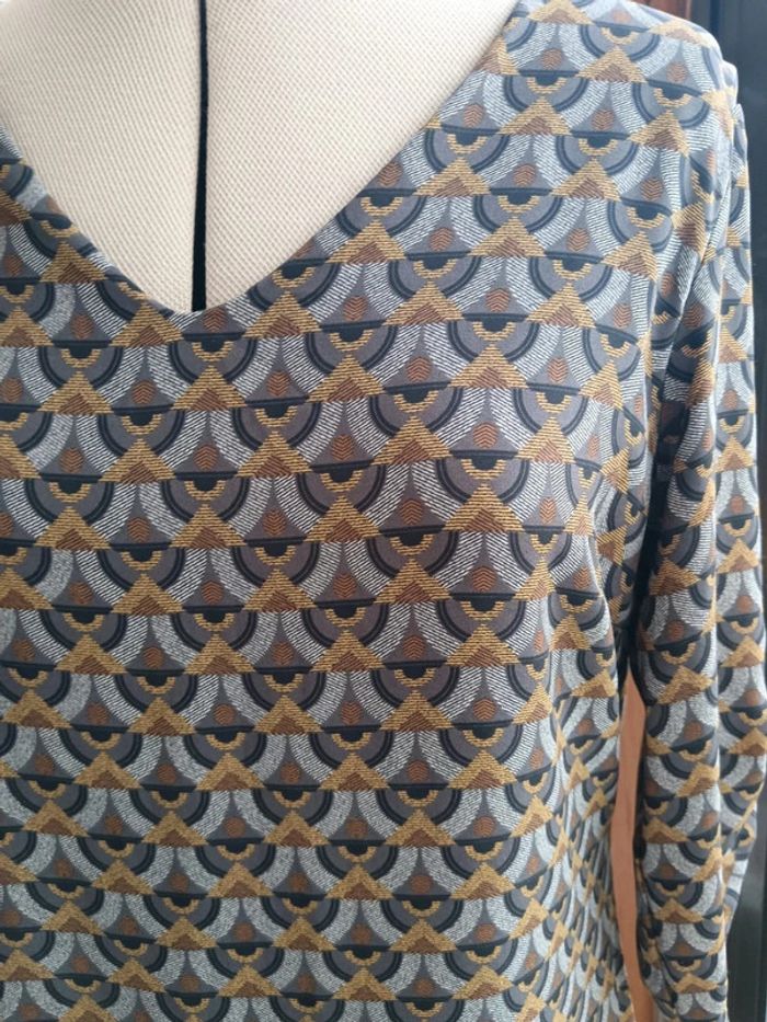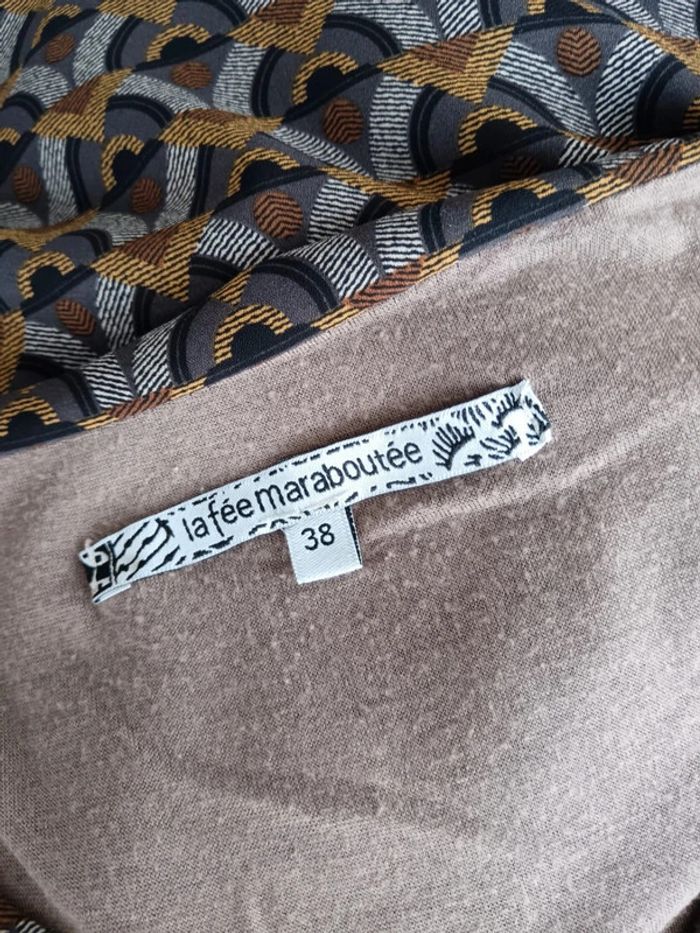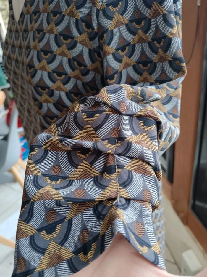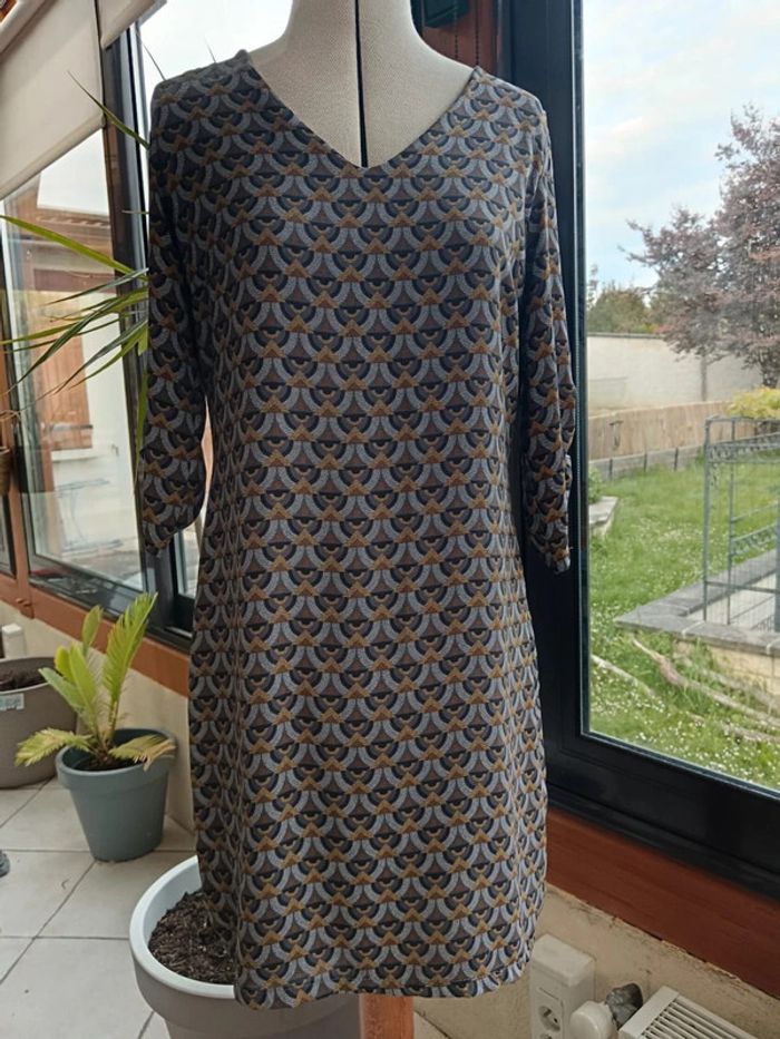 Robe imprimé ethnique, La fée Maraboutée taille 38. Manches mi longues froncées, doublure intégrée.