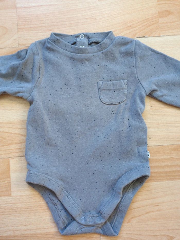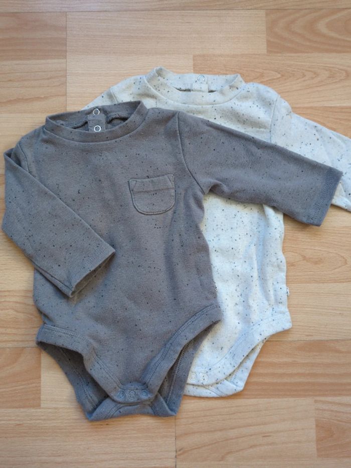 Taille 6 mois 2 bodies d'hiver Kiabi 1 beige chiné, 1 gris chiné