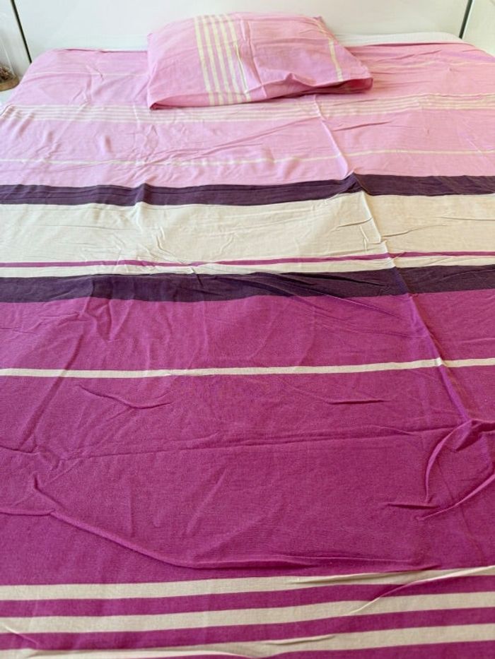 Parure de lit pour un matelas en 140x190 (housse de couette + 1 taie d’oreiller) Légère trace de stylos qui part avec les bons produits (photo n°5)