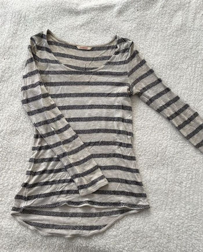 Porté quelques fois mais reste en super état. Étiquette manquante mais correspond à un 36 (selon moi) ⚠️ Réduction spéciale printemps : 4€ jusqu'au 2 avril inclus puis repasse à 7€. Bon shopping ! 🌸 #mylene3004haut36 #mylene3004ado #pullmarron #pullbeige #pullrayureshorizontales #rayuresbleues #rayureshorizontales #pullfeminin #pullfantaisie #petitprixneuf #pullcreme #pulltaupe #moulant #camaieu #S