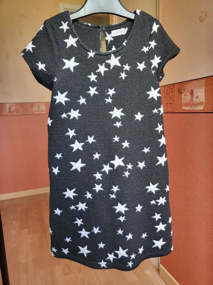 Robe "Orchestra" Noire/étoiles blanches 1 bouton haut du dos Taille 10 ans
