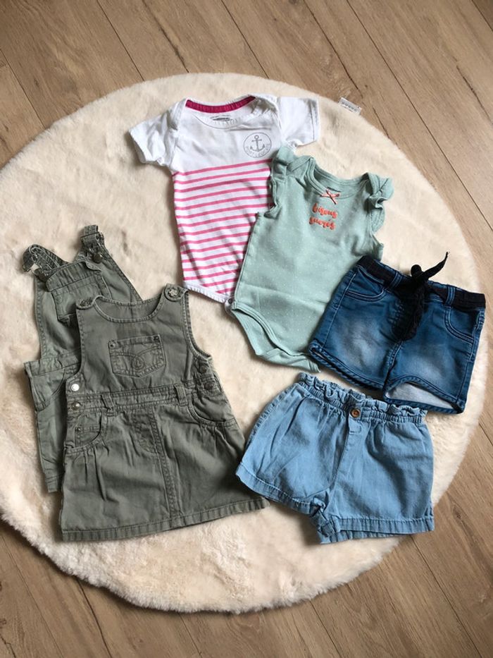 De bon état à très bon état 2 bodies, 2 robes salopette, 2 shorts #camomille2218douzemois