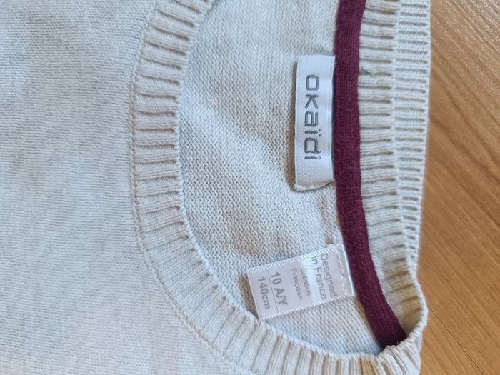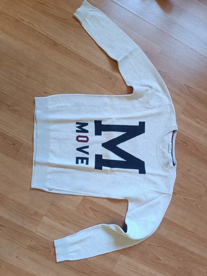 Pull garçon Taille 10 ans. Bon état. Juste une petite tâche sur l'arrière d'un bras au niveau du coude (voir photo). Maison non fumeur.