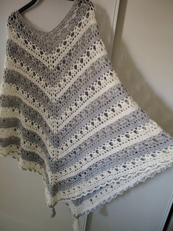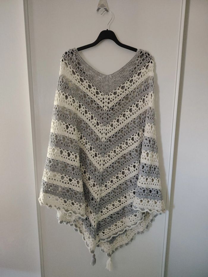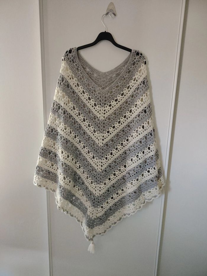 Pochon en laine, tricoté à la main bicolore : blanc et gris #ladyminuitfemme