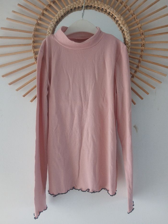 Pull léger rose avec détails noir aux manches et en bas du pull Très bon état,peu porté Taille 134/140