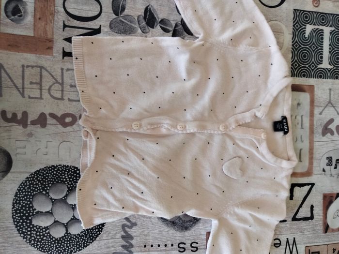 Gilet rose pâle a pois noir Kiabi 12 mois