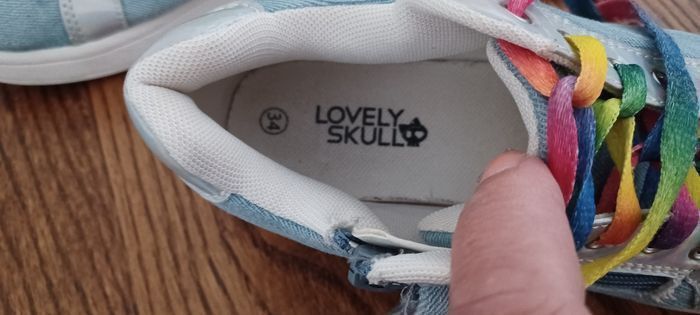 Très belle baskets Pointure 34 Tbe Juste sur la languette ne Cole plus mais rien de grave voir photo Marque Lovely skull N'hésitez pas à faire des lot pour économiser les frais d'envoi