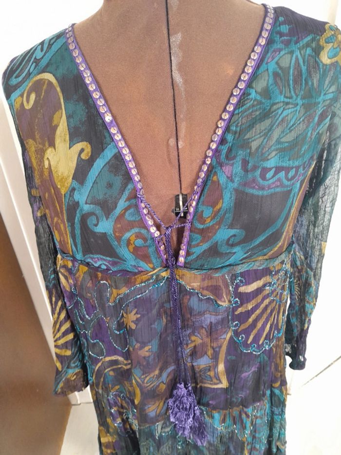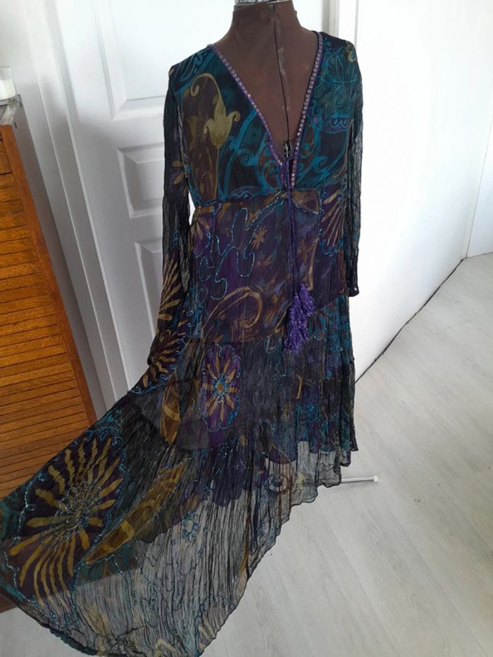 Robe été bohème mi longue légèrement plus longue dans le dos