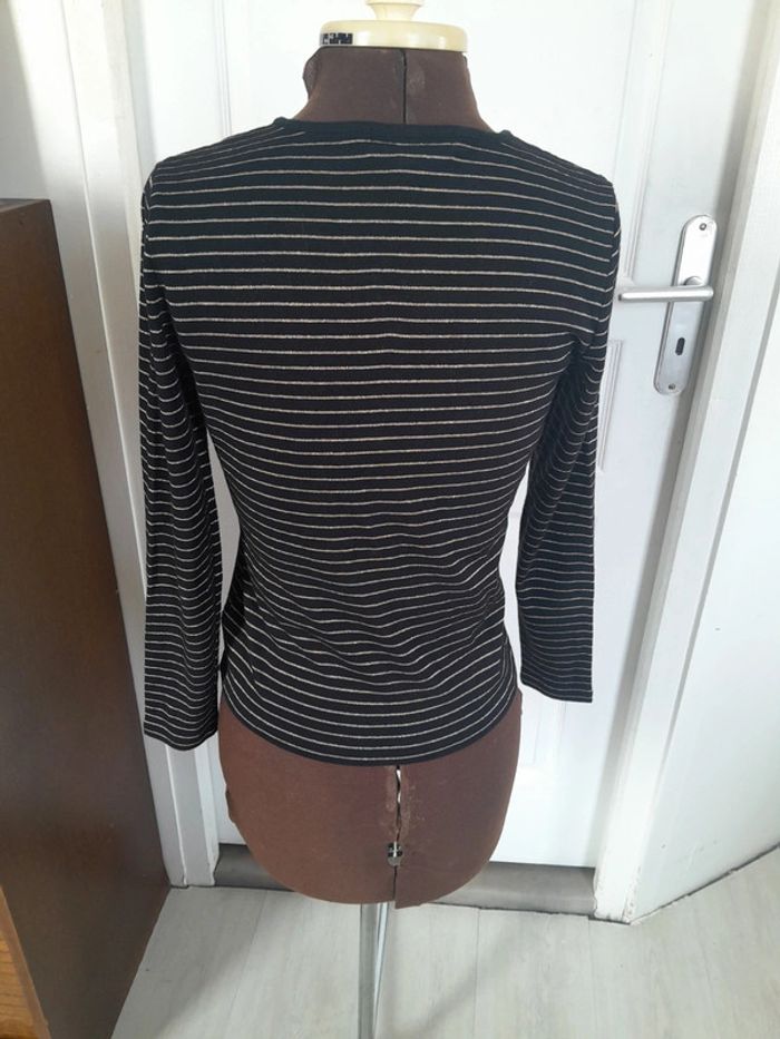 Tee shirt manches longues a boutons noir et doré Lauren Ralph Lauren  petit M - photo numéro 3