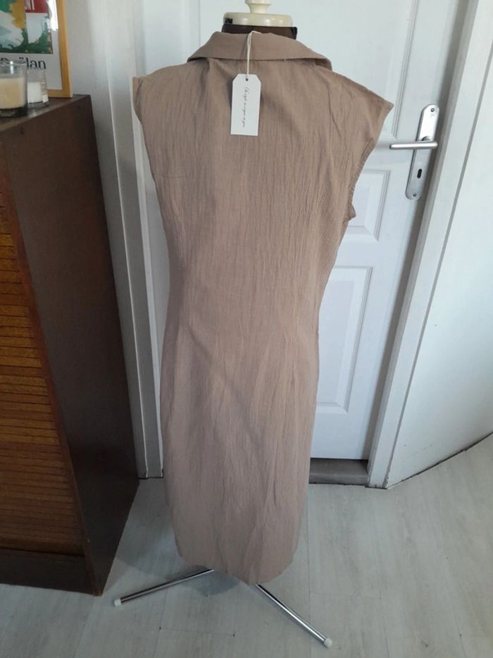 Jolie robe été mi longue boutonnée sans manche coton lin Shallwe - photo numéro 8