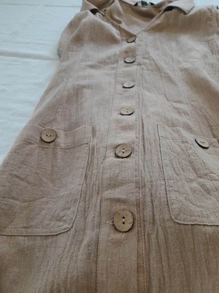 Jolie robe été mi longue boutonnée sans manche coton lin Shallwe - photo numéro 2