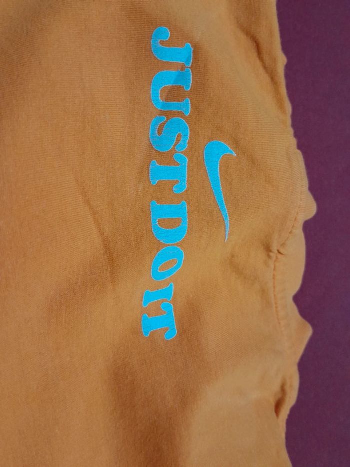 Porté manque étiquette de taille correspond à un 14 ans . Stocké plié voir sous le logo couleur légèrement passée