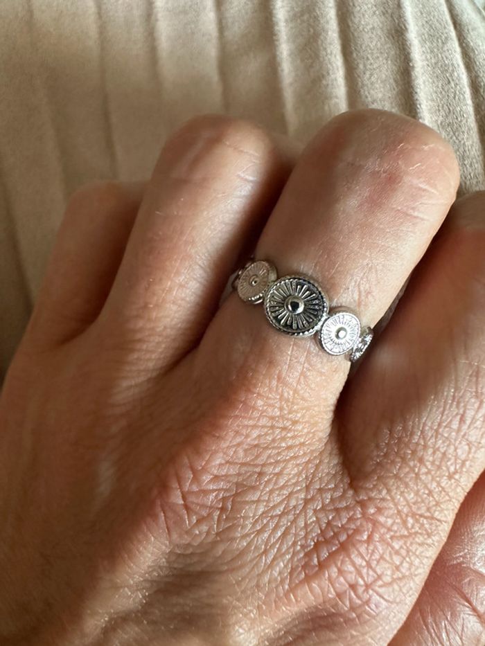 Bague ouverte fine en acier inoxydable argenté Bague médaillon argent Réglable parfait état